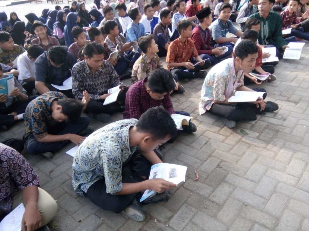 Indonesia sekarang ini berada di titik yang sangat memprihatikan dalam hal minat baca, negara kita berada pada peringkat dua terbawah. Lebih mirisnya lagi para pelajar enggan membaca buku karena malas, capek, bahkan tidak suka dengan bukunya. Untuk meminimalisir masalah tersebut, SMP Muhammadiyah Slawi rutin mengadakan program untuk merangsang serta menumbuhkan minat baca, sasarannya bukan hanya siswa, tetapi guru dan karyawanpun juga tak luput dari kegiatan ini, yaitu “LITERASI ASIK dan MAKAN BERSAMA dengan TAWA” yang dilaksanakan selama satu bulan sekali di lapangan sekolah.